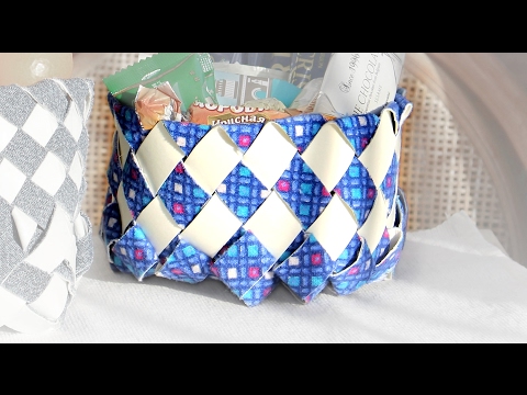 How to make a nice basket with legs from milk carton - Milk Carton Basket - Use an empty milk carton and weave a basket with foru legs!